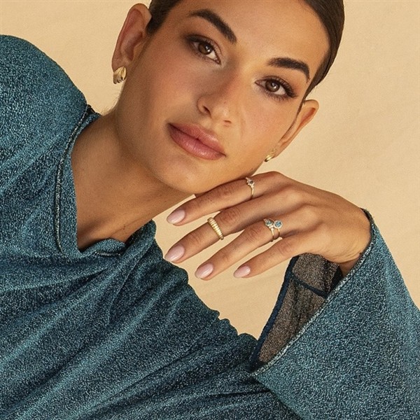 Anillo Petite de oro y topacio Paraiba Tramontane
