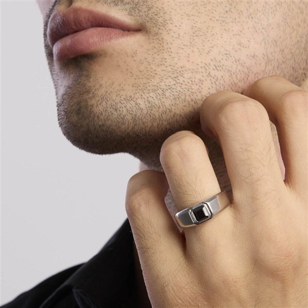 El anillo tipo sello Omar destaca por su diseño elegante y masculino y su estructura sólida y de lÃneas limpias lo convierten en una pieza versátil y atemporal. Luce una estética depurada que se realza con una circonita negra de corte geométrico, aportando profundidad y un brillo sutil.