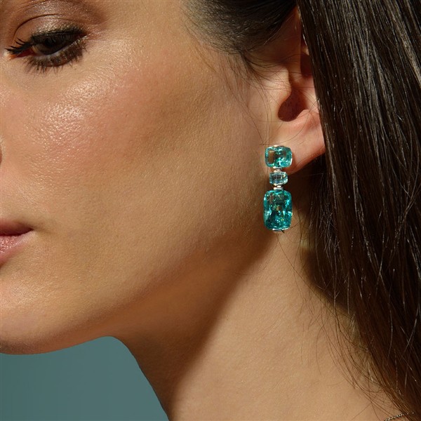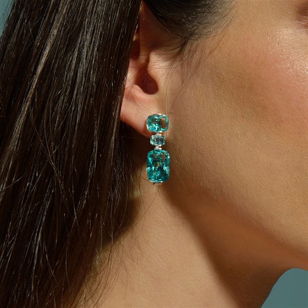 Este anillo destaca por la intensidad de su profundo azul aguamarina y por un diseño de lÃneas refinadas que realza la belleza de cada piedra. Tres gemas talladas con precisión en distintas formas se arraciman en una composición que aporta originalidad, luz y una elegante sensación de equilibrio.
