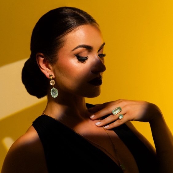 El anillo Auralis es una pieza excepcional dentro del universo Oniria: un diseño escultural que combina dos cuarzos menta, uno rectangular y otro talla cojín, en un diálogo de luz y fantasía. La montura está trabajada con la inconfundible textura floral y vegetal de la colección, envolviendo cada gema como si brotara de un jardín encantado.