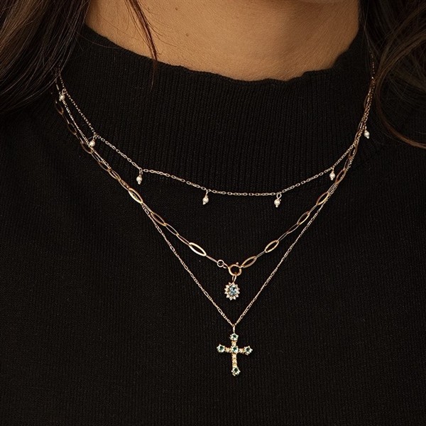 Este colgante está realizado en oro 375mls., circonitas y topacio London. El colgante tiene unas medidas de 7x6mm. La cadena de oro 375mls. tiene una longitud de 38/42cm.