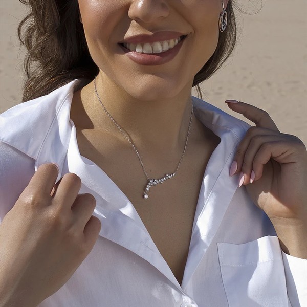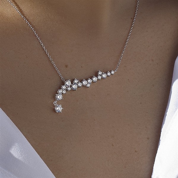 Este collar está realizado en plata 925mls. y circonitas. La parte central tiene un largo de 45mm. y el collar tiene una longitud de 40/45cm. y su cierre es de mosquetón.