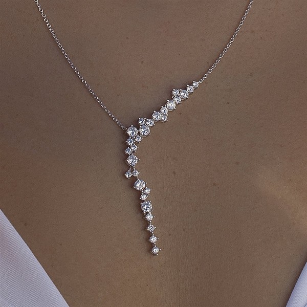 Este collar está realizado en plata 925mls. y circonitas. La parte central tiene un largo de 40mm. y el collar tiene una longitud de 40cm. y su cierre es de mosquetón.