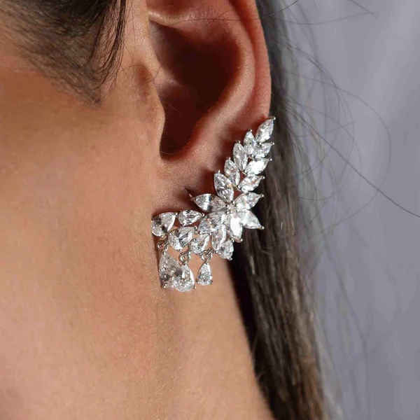 Estos pendientes trepadores elevan cualquier look con una elegancia serena y atemporal. Su diseño inspirado en hojas estilizadas abraza delicadamente la oreja, creando un efecto luminoso y sofisticado que no pasa desapercibido, Una joya que combina artesanía y modernidad.