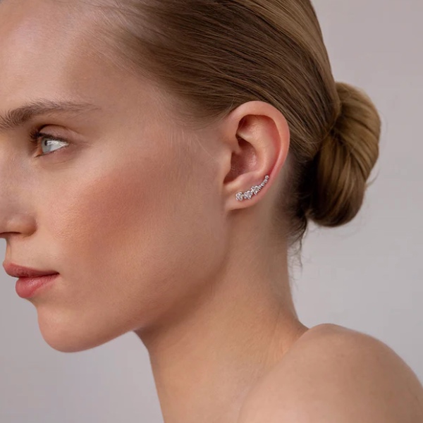 Los pendientes trepadores son un modelo de pendientes súper modernos, que una vez puestos recorren desde el lóbulo hacía la parte superior de la oreja, decorándola de una forma muy original. El modelo Floris recoge toda la inspiración del mundo floral desde una perspectiva moderna.