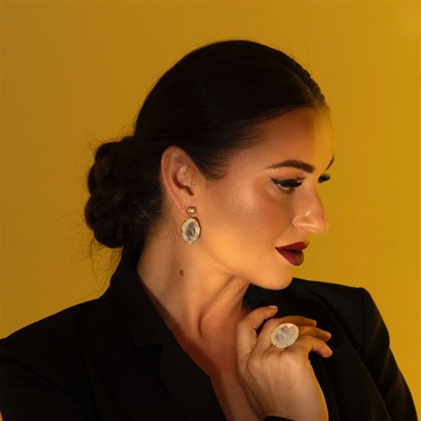 Estos pendientes están elaborados artesanalmente en plata con baño de oro y cuarzos blancos ovales de acabado orgánico que evocan destellos atrapados en un sueño. Su textura floral y su brillo suave aportan movimiento, magia y un toque de fantasÃa luminosa al rostro.