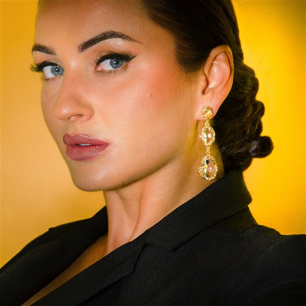 Estos pendientes exploran la profundidad mágica del universo Le Jardin de Clorì. Sus superficies texturizadas repletas de flores intrincadas y sus tres gemas traslúcidas y de formas irregulares evocan la sensación de mirar a través de aguas cristalinas hacia un abismo luminoso y sereno.