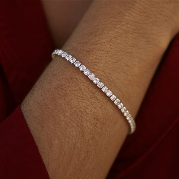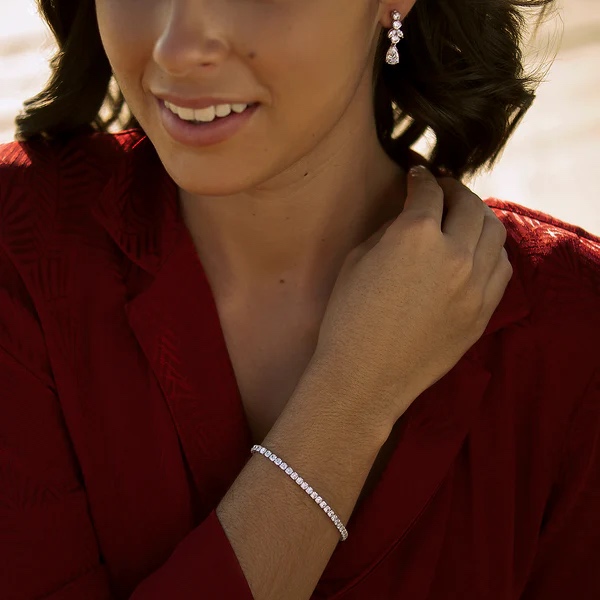 Brillo eterno, elegancia atemporal. Nuestra pulsera Bella reinterpreta la clásica pulsera rivière, esta vez elaborada en plata de alta calidad y engastada con circonitas de igual esplendor, ofreciendo el efecto luminoso de una joya de lujo en una versión más accesible.